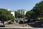 Via dello Zodiaco, at the corner with Viale Santa Margherita, tennis court area.